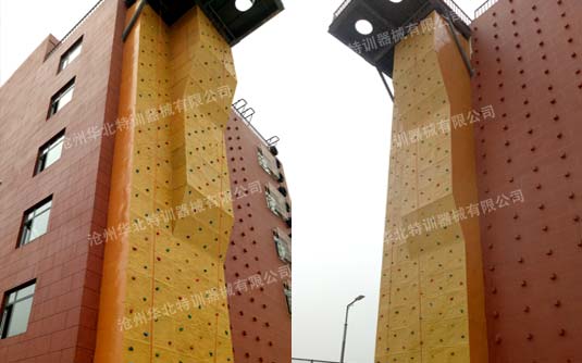 此類攀巖墻采用玻璃鋼樹脂復(fù)合材料制成,不含任何對人體有害的化學(xué)成分,每塊巖板0.9×0.9米,由各種不同造型的攀巖板拼接成造型豐富的整體墻面。
