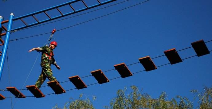 緬甸橋。這是一個有三條繩索構(gòu)成的高空項目。官兵需要依靠自身力量,完成從繩索一段到另一端的穿越。 典型案例:小明軍事訓(xùn)練五公里、隊列、擒敵樣樣拿手,唯有四百米障礙成績一直不及格。心理咨詢師經(jīng)過了解后得知小趙患有恐高癥,訓(xùn)練時,一遇高板和壕溝就膽怯。針對這一情況,心理咨詢師擬定了詳細(xì)方案,通過反復(fù)“登高...
