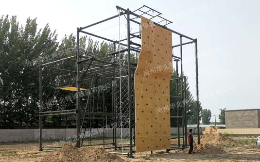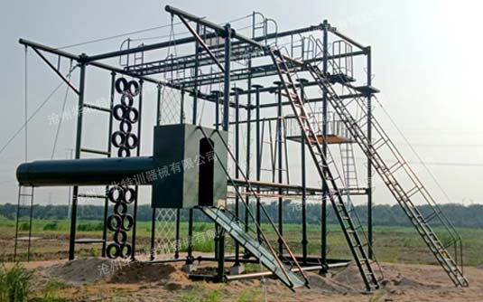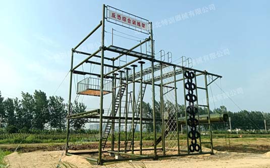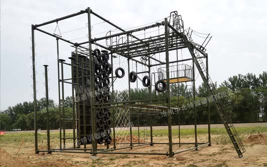 高空反恐綜合訓練架器械常規(guī)項目間距6米,總高9米。主要項目包含:單杠、斷橋、天梯、吊索橋等幾十多種單項。可根據(jù)場地大小和訓練需求選定項目進行定制。