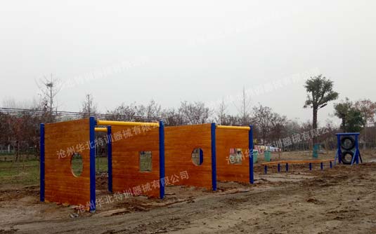 青少年軍事樂園障礙賽單道整體占地:45米長×4米寬,共有雙層輪胎、平衡過橋、障礙墻、跳躍輪胎、匍匐前進(jìn)、翻越高墻6個項目。