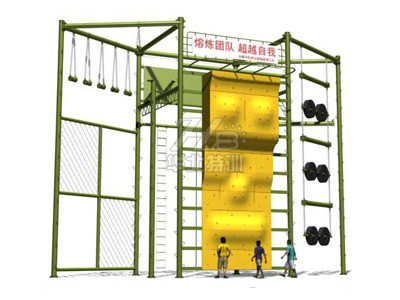 器械整體占地15.57米×5.7米×12米(高),最小場地需求20米×10米。主要項目:攀巖、單杠、斷橋、天梯、蕩木橋、繩網(wǎng)、絕壁橫墻、軟梯、速滑、速降、翹板橋