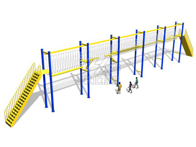 整體尺寸:占地42米長×8米寬。器械尺寸38米長×0.9米寬×6米高,站立高度3.5米。由六組立柱和中間項目組成,立柱間距6米