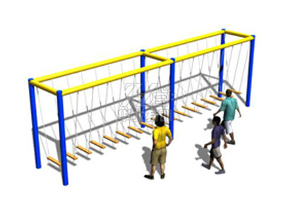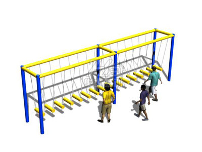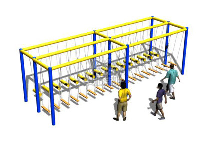 參訓(xùn)人員在器械一端借助鏈條腳踩木板掌握好身體平衡的同時通過倒換木板的方式向前移動到達終點。