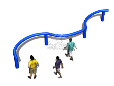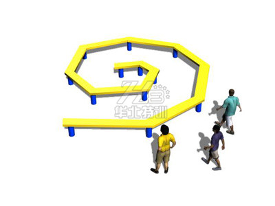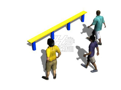 人員從曲折橋的一端,在不借助任何物體的情況下慢慢通過。