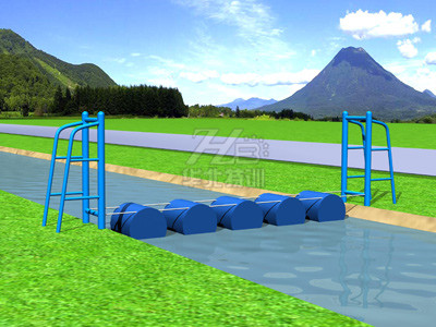 使用說明:掌握好身體平衡后,腳踩浮桶逐一通過