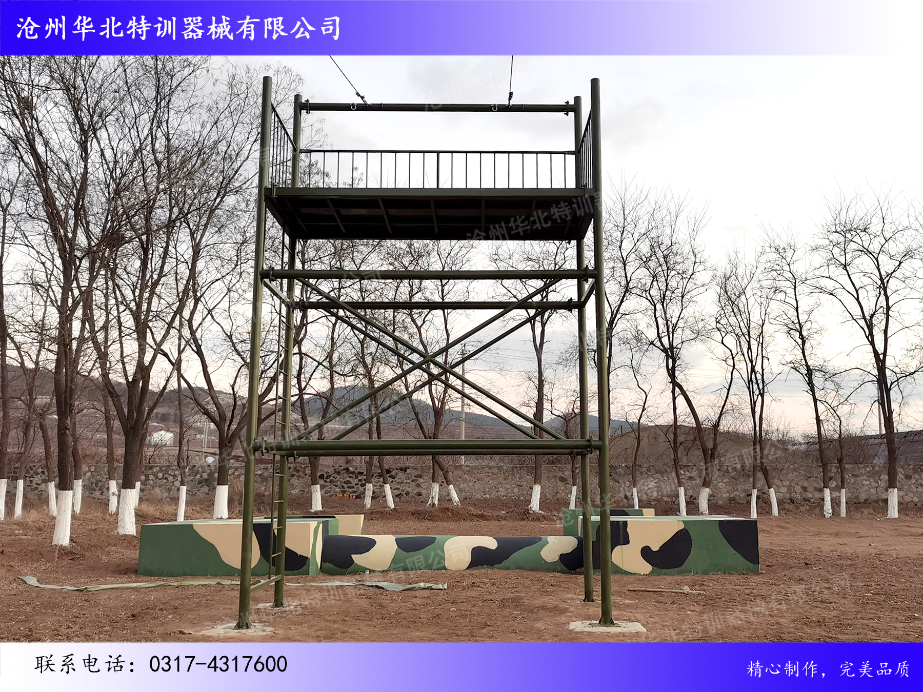 滄州華北特訓(xùn)器械有限公司經(jīng)過近二十年的發(fā)展,合作客戶已經(jīng)覆蓋軍隊(duì)、武警、公安、司法、消防、邊防、教育、大中企業(yè)、旅游景區(qū)、休閑娛樂等多個(gè)行業(yè)。公司主要產(chǎn)品包括:經(jīng)典拓展訓(xùn)練器械、拓展訓(xùn)練器械、青少年素質(zhì)拓展訓(xùn)練器械、軍警訓(xùn)練器械、公安消防訓(xùn)練器械、叢林探險(xiǎn)器械、水上拓展訓(xùn)練器械、CS拓展訓(xùn)練器械、安全裝備等系列產(chǎn)品,同時(shí)為客戶提供器械維護(hù)保養(yǎng)、人員培訓(xùn)、基地運(yùn)營等多方面的培訓(xùn)。期待與您合作:0317-4317600!