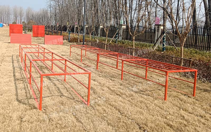 兒童國(guó)防軍事障礙賽單道場(chǎng)地長(zhǎng)50米×寬2.5米。通常為雙道并列設(shè)置。項(xiàng)目依次為獨(dú)木橋、高欄、斜坡、地籠、矮墻、高板6個(gè)項(xiàng)目。