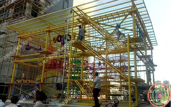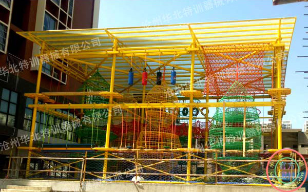 桂林市臨桂區(qū)時(shí)代楓林兒童拓展樂園是客戶經(jīng)過前期的考察,經(jīng)過綜合對(duì)比最終確定由我方(華北特訓(xùn))承建。我方根據(jù)使用方的場地、預(yù)算及要求和我公司從事拓展基地建設(shè)十多年來的經(jīng)驗(yàn),再對(duì)拓展市場需求詳細(xì)分析之后,推薦設(shè)計(jì)。最終確定方案為兒童雙目兩層加攀巖的綜合拓展架,現(xiàn)已建設(shè)完成并投入使用。