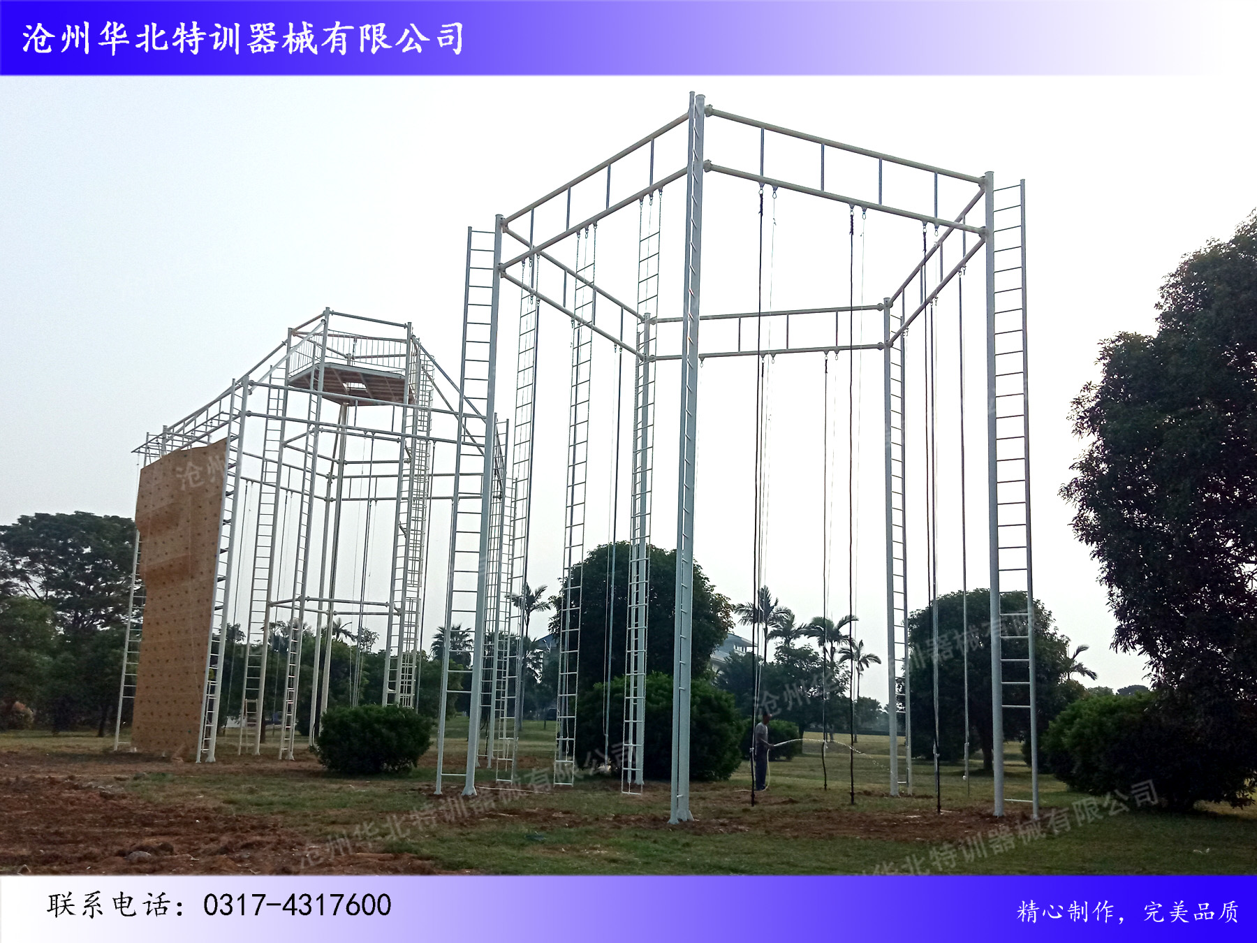 滄州華北特訓(xùn)器械有限公司經(jīng)過近二十年的發(fā)展,合作客戶已經(jīng)覆蓋軍隊(duì),武警,公安,司法,消防,邊防,教育,大中企業(yè),旅游景區(qū),休閑娛樂等多個(gè)行業(yè)。產(chǎn)品包括:高空拓展訓(xùn)練器械(心理行為訓(xùn)練器械),軍警拓展訓(xùn)練器械,公安消防拓展訓(xùn)練器械,地面拓展訓(xùn)練器械,青少年素質(zhì)拓展訓(xùn)練器械(重走長(zhǎng)征路),水上拓展訓(xùn)練器械,叢林探險(xiǎn)拓展訓(xùn)練器械 ,CS拓展訓(xùn)練器械,安全裝備等系列產(chǎn)品,同時(shí)為客戶提供拓展訓(xùn)練器械維護(hù)保養(yǎng),人員培訓(xùn),基地運(yùn)營(yíng)等多方面的培訓(xùn),期待與您合作:0317-4317600!