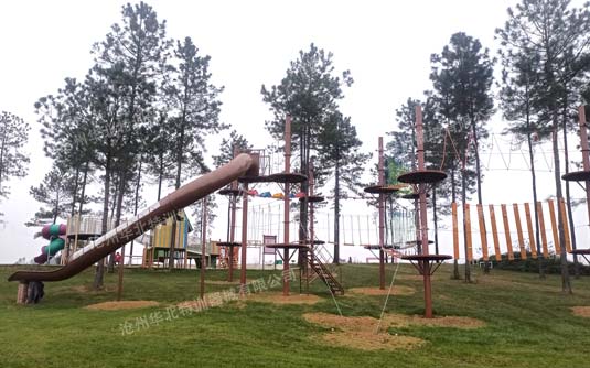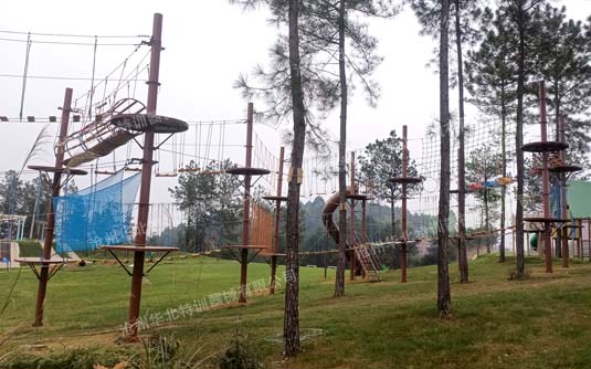 要求場地有大的樹木,樹木直徑要求大于20厘米以上,高度要求在6米以上,因為要在樹木上安裝站立平臺和架設項目,要求樹木能夠承受足夠的拉力。如果樹木過細高度不夠,就需要架設仿真樹木或鋼構的立柱來替代樹木。