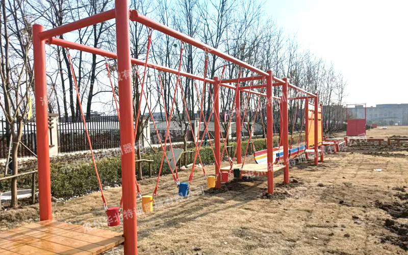 此款重走長征路游樂設備規(guī)格場地需求35米長×32米寬,器械 33.45米長×30米寬。項目寬1.2米,最高點3.5米。主要包含:水平網(wǎng)、橫移墻、時空穿越、吊樁、爬網(wǎng)、曲折橋、圓木秋千等24個項目,可根據(jù)場地情況針對性定制不同規(guī)格,選擇不同項目。