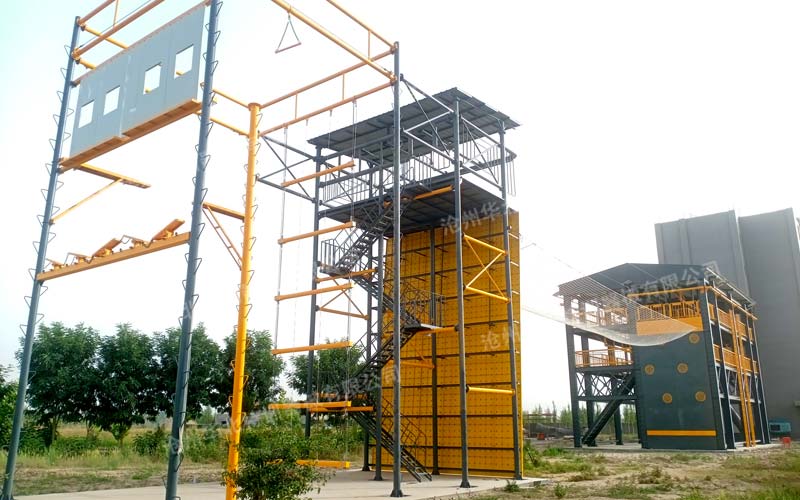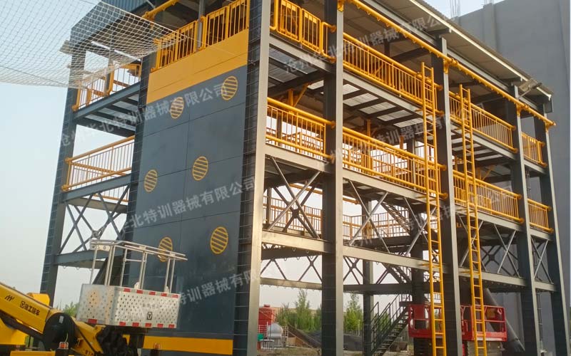 主體結構多為鋼結構訓練塔或框架式平臺,可根據(jù)訓練需求設計為多層,配備多個錨點、承重平臺和連接通道。錨點結構、綜合強度設計科學合理,充分考慮訓練的安全性,通過空間與結構設計,最大程度上降低各種風險要素圍繞實戰(zhàn)化訓練場景設施,充分考慮訓練空間與訓練效率的結合。