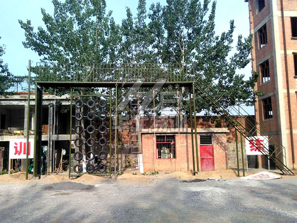 整體尺寸:占地17米長(zhǎng)×5米寬。器械主體尺寸16.4米長(zhǎng)×1米寬×7.5米高,平臺(tái)高度6米。主要