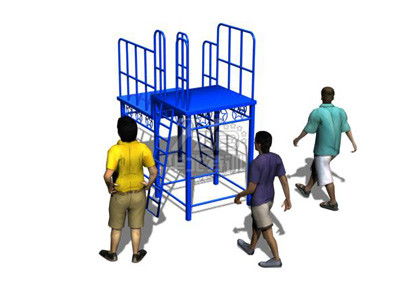 小組所有參訓(xùn)人員依次沿著爬梯站在臺子上,背向大家,身體后倒,其他隊員成兩列隊形,用雙臂接住背摔隊員。