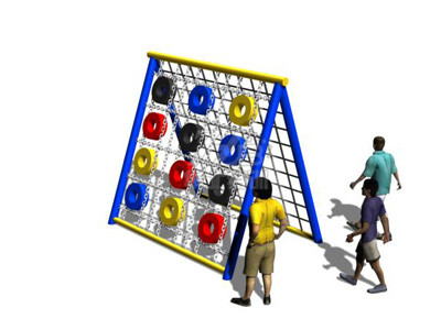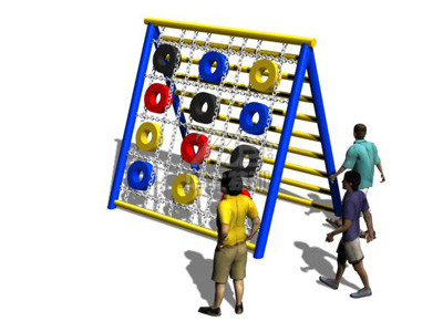 從器械一面通過攀爬輪胎,翻越制高點(diǎn)由另一面攀下至地面。