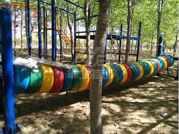 從器械一面通過(guò)攀爬輪胎,翻越制高點(diǎn)由另一面攀下至地面