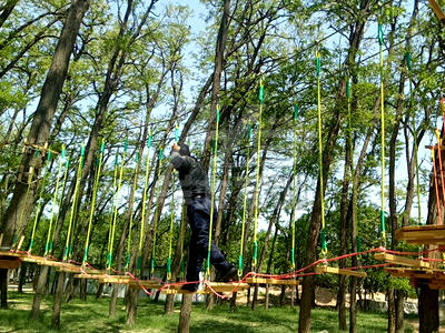 叢林探險(xiǎn)是通過在樹木與樹木之間搭建各種不同風(fēng)格,難易程度不同,超強(qiáng)刺激的拓展項(xiàng)目,利用專業(yè)的安全裝備體驗(yàn)高空穿行,感受樹上攀爬與林間穿越的刺激,能有效的提高參與者的勇氣和自信心。可以使得體驗(yàn)者體會(huì)到不同于普通地面環(huán)境下的穿越感受。