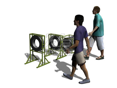 7個(gè)汽車外胎(型號(hào):900-20),模擬成3個(gè)高度不同的山洞